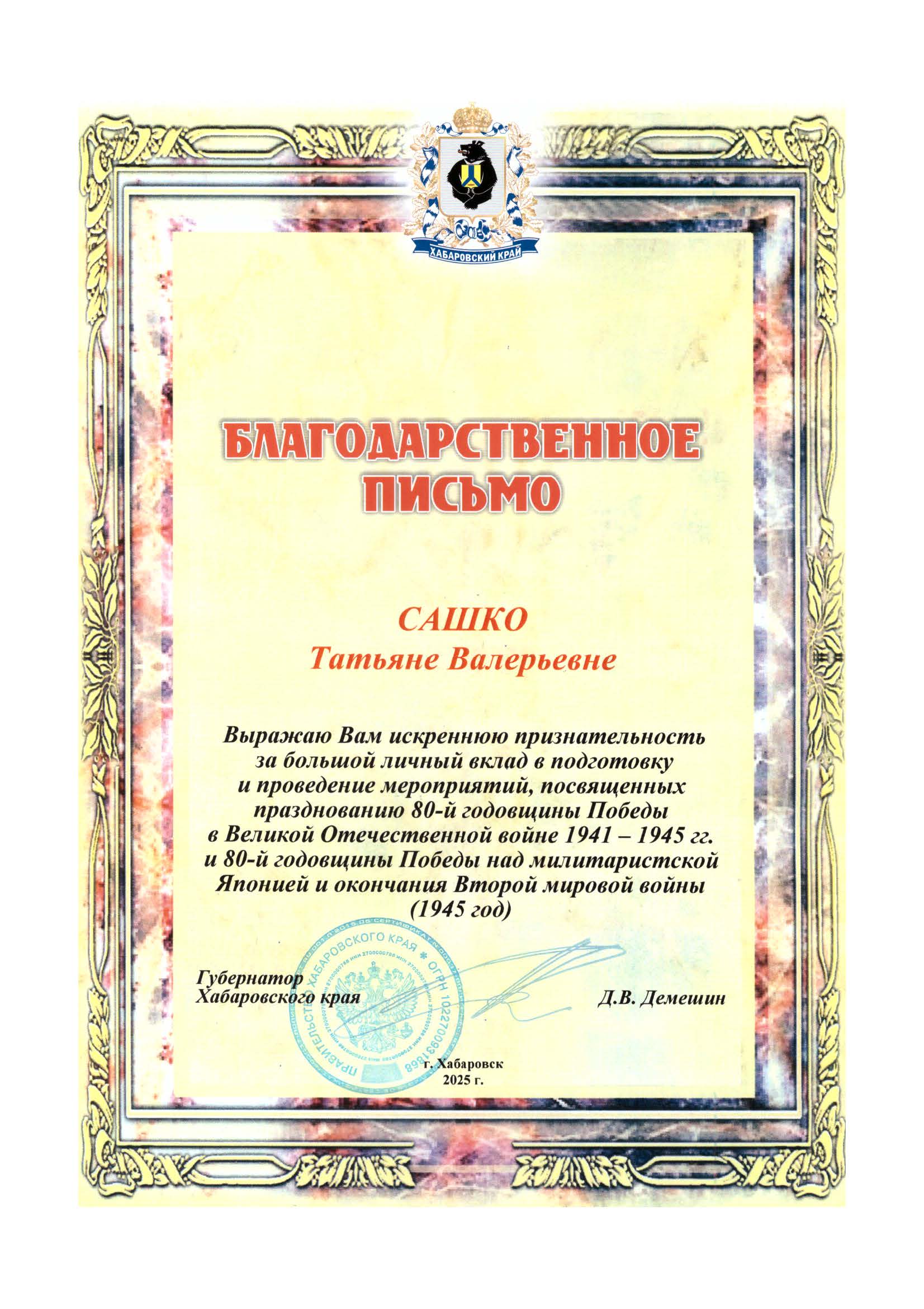 Благодарственные письма