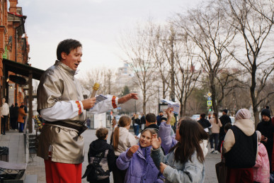 На входе гостей встречал настоящий Богатырь – Игорь Романишин, организатор праздников для детей и взрослых, который сразу стал любимцем маленьких посетителей. Особенно впечатлило всех его азот-шоу, где наука и зрелищность объединились на одной площадке. Торжественное открытие мероприятия ознаменовалось ярким выступлением ансамбля «Берега России» — гости вместе исполнили знаменитую «Матушка Земля», ощутив единство и причастность к общей традиции. Программу продолжило дефиле коллекции «Истоки востока» от молодого дизайнера Таисии Дращёвой, студентки Хабаровского технологического колледжа.