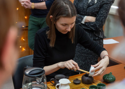 Мы пригласили наших друзей из Центра работы с населением «Исток» совершить увлекательное путешествие в мир китайского чая. Гости познакомились с богатейшей историей чайной культуры, узнали о многообразии сортов — от нежных зеленых до выдержанных пуэров, и о философии, скрытой в каждом этапе его приготовления.