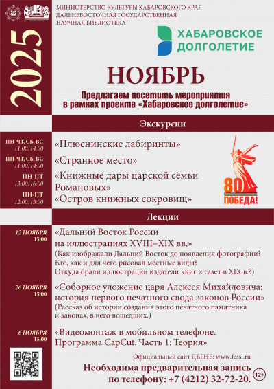 Мы рады сообщить, что Дальневосточная государственная научная библиотека присоединилась к проекту «Хабаровское долголетие», который направлен на улучшение жизненной активности пожилых граждан, раскрытие их внутреннего потенциала и формирование положительного отношения к активному образу жизни.
