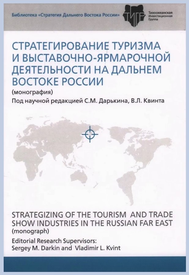 Стратегирование туризма и выставочно-ярмарочной деятельности на Дальнем Востоке России = Strategizing of the Tourism and Trade Show Industries in the Russian Far East : монография / И. З. Чхотуа, А. В. Садовничая, Л. И. Власюк, А. С. Хворостяная ; под науч. ред. С. М. Дарькина, В. Л. Квинта. – Москва : Первое экон. изд-во, 2024. – 405 с. : табл. – (Библиотека «Стратегия Дальнего Востока России»). – Парал. тит. л. англ. – Библиогр.: с. 356–378 (219 назв.) и в подстроч. примеч. – ISBN 978-5-91292-518-4. – [ДВ 4 / С 833 3775715] |