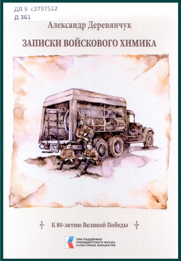Деревянчук, А. П. Записки военного химика : к 80-летию Великой Победы / А. П. Деревянчук ; сост. Т. Ю. Бутенко ; ред. Г. Ф. Низяева ; Межрегион. обществ. орг. «Сохранение историко-культурного наследия Крыма и Севастополя», Рос. акад. наук, Дальневост. отд-ние, Ин-т химии. – Севастополь ; Владивосток : ИК ИПТС [и др.], 2025. – 113, [2] c. : ил., портр. – ISBN 978-5-6051824-7-4. – [ДВ 9 / Д 361 с3797512] |