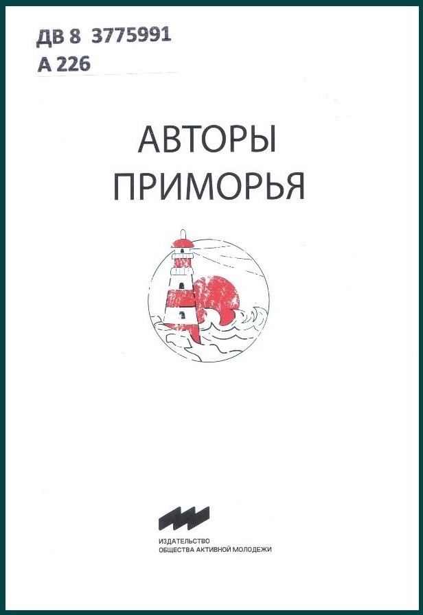 Авторы Приморья : сб. рассказов / под ред. К. Шепетун. – Владивосток : Изд-во О-ва актив. молодёжи, 2024. – 244 с. – ISBN 978-5-6052129-0-4. – [ДВ 8 / А 226 3775991] Сборник рассказов победителей краевого конкурсного отбора молодых писателей «Авторы Приморья». |