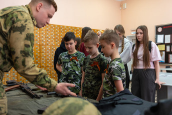 Отдать дань уважения и восхищения доблестным защитникам нашей страны в библиотеке собрались студенты и преподаватели Хабаровского промышленно-экономического техникума, Хабаровского технологического колледжа и МБОУ Правовой лицей им. Сергея Николенко. Началось мероприятие в зале каталогов. Там сотрудники Росгвардии организовали выставку учебного оружия, экипировки и индивидуальных средств защиты. Юные гости библиотеки прошли увлекательный мастер-класс по разборке-сборке автомата Калашникова.