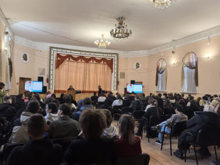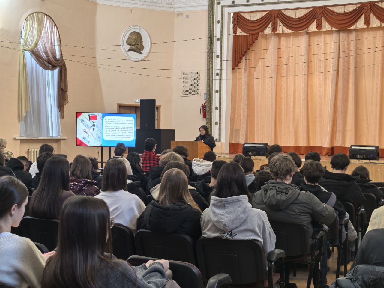 11 декабря 2025 г. сотрудники Дальневосточной государственной научной библиотеки провели историко-патриотическое мероприятие для молодёжи «Слава героям России!» в Хабаровском промышленно-экономическом техникуме. В зале присутствовало 100 студентов и преподавателей ХПЭТ. Сотрудники библиотеки рассказали об истории праздника и прославленных героях – кавалерах ордена Святого Георгия Победоносца, Героях Советского Союза, Российской Федерации. Героях разных веков и различных по званию, которых объединяло одно – великая любовь к своему народу, своей Родине и способность к её защите. Также студенты узнали о подвигах, которые были совершены героями-дальневосточниками на полях сражений Специальной Военной Операции.