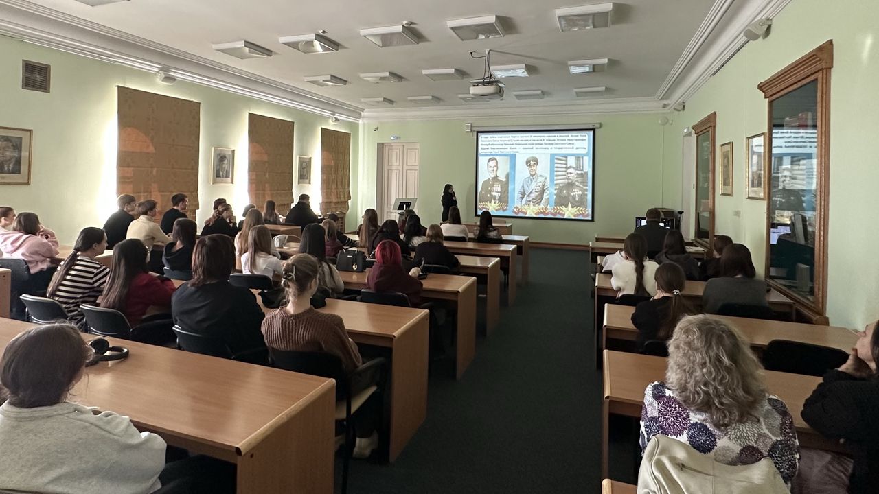 16 декабря 2025 г. сотрудники Дальневосточной государственной научной библиотеки провели историко-патриотическое мероприятие «Слава героям России!» для студентов КГБ ПОУ «Хабаровский промышленно-экономический техникум». Гостям рассказали об истории праздника и прославленных героях – кавалерах ордена Святого Георгия Победоносца, Героях Советского Союза, Российской Федерации. Героях разных веков и различных по званию, которых объединяло одно – великая любовь к своему народу, своей Родине и способность к её защите. Также студенты узнали о подвигах, которые были совершены героями-дальневосточниками на полях сражений Специальной Военной Операции.