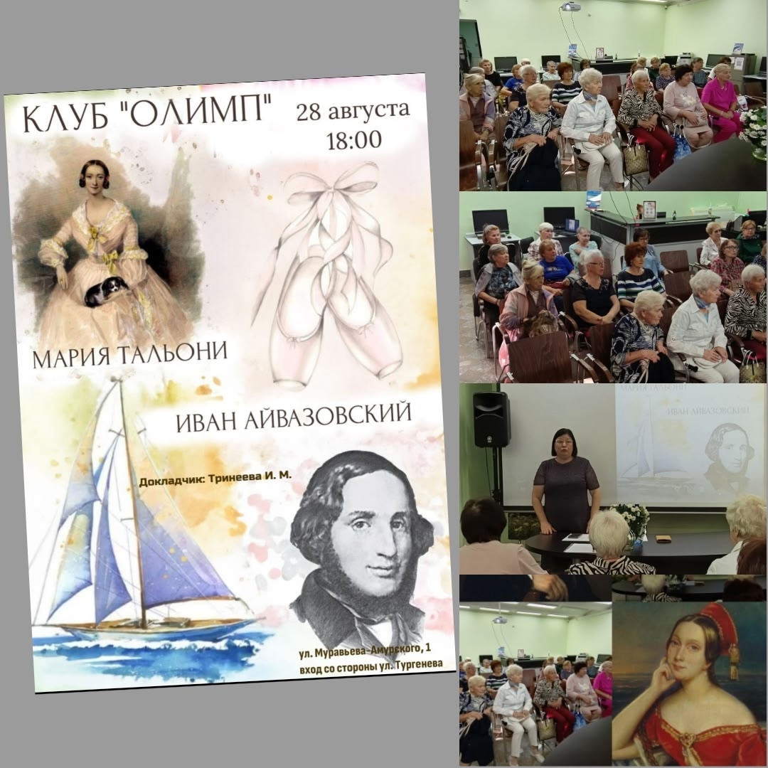 28 августа 2025 года совместно с клубом "Олимп" мы провели мероприятие, посвящённое неотразимой итальянской балерине Марии Тальони и великому художнику Ивану Константиновичу Айвазовскому.