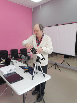 Особый интерес вызвали выступления участников мероприятия. Валентин Станиславович Тумаков, увлечённый астроном-любитель, поделился своим опытом, продемонстрировал личное оборудование — телескоп и подзорную трубу, доступно объяснил принципы их работы. А Ирина Евгеньевна Гурьянова порадовала присутствующих проникновенным стихотворением собственного сочинения, посвящённым космосу.