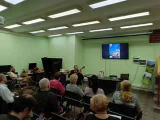 Марина Дубинина рассказала о своей публикации в свежем номере журнала «Дальний Восток» и исполнила популярные песни 60-х годов под звуки гитары.