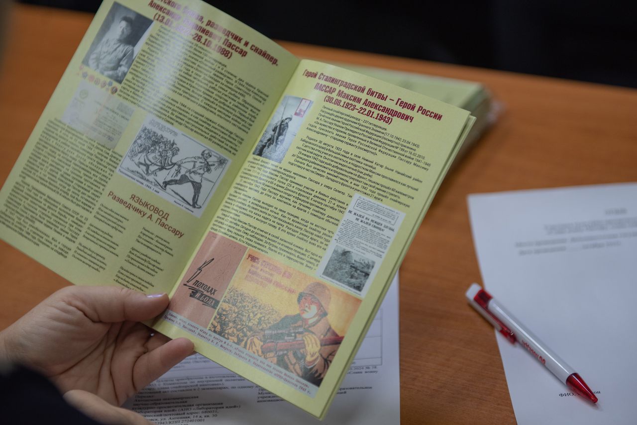 Для ребят была проведена познавательная историко-патриотическая викторина «Слава воину Пассару, слава снайперской винтовке!» Они активно участвовали в викторине и получили призы – авторучки с символикой года 80-летия великой Победы. Рассказ сотрудников команды проекта сопровождался показом слайдовой презентации и видеороликов, посвящённых Герою Советского Союза Александру Падалиевичу Пассару и Герою России Максиму Александровичу Пассару.