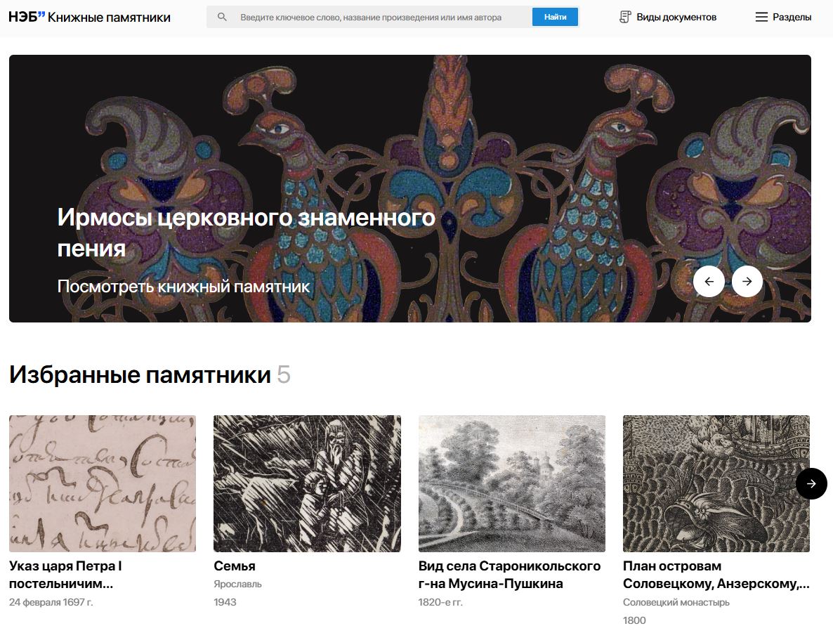 В декабре 2025 года портал «НЭБ. Книжные памятники» пополнился на 8 000 высококачественных цифровых копий редких и ценных документов. Общее количество оцифрованных книжных памятников достигло 56 000. Этот сайт – часть Национальной электронной библиотеки, объём которой на сегодняшний день составляет почти шесть миллионов изданий по разным темам. Здесь представлены старинные книги и рукописи, а также гравюры, плакаты, нотные издания, географические карты, журналы и другие документы. Все они оцифрованы в высоком качестве, позволяющем в мельчайших деталях рассмотреть уникальные материалы.