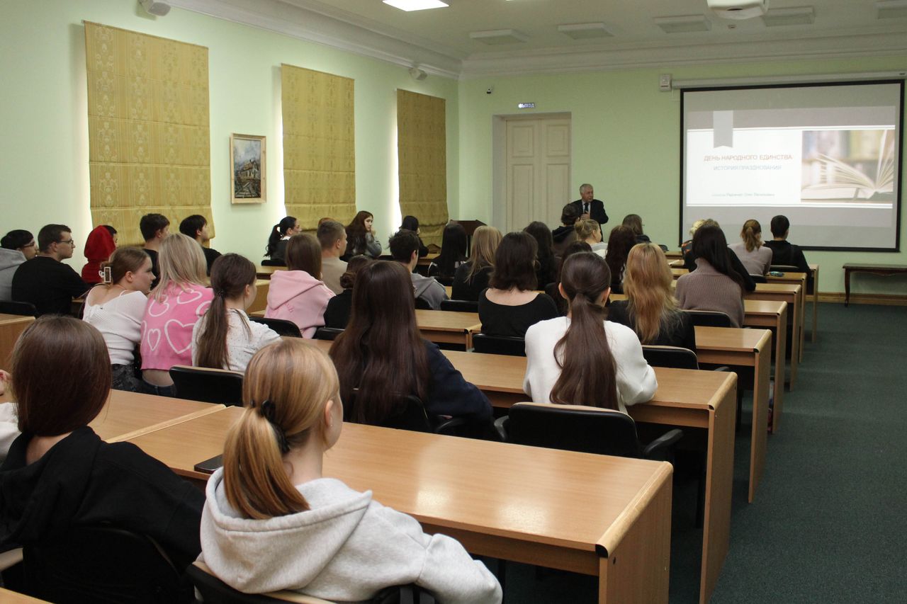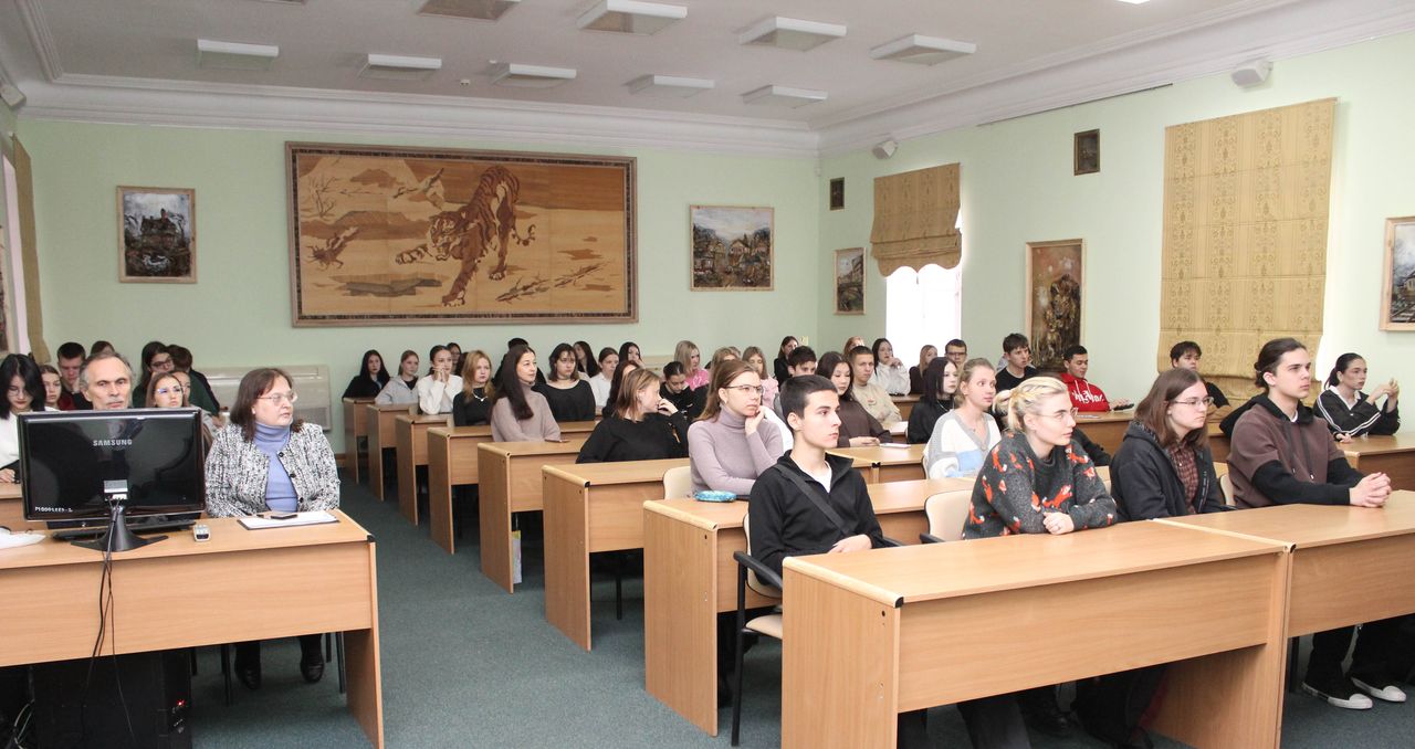 28 октября в Дальневосточной государственной научной библиотеке состоялось просветительское мероприятие для молодёжи «Победа, объединившая Россию». Библиотеку посетили 80 студентов Хабаровского промышленно-экономического техникума. Перед гостями выступил Олег Васильевич Радченко, член Союза писателей России, военный историк и полковник министерства обороны РФ в запасе, участник Специальной военной операции, лектор Российского общества «Знание».