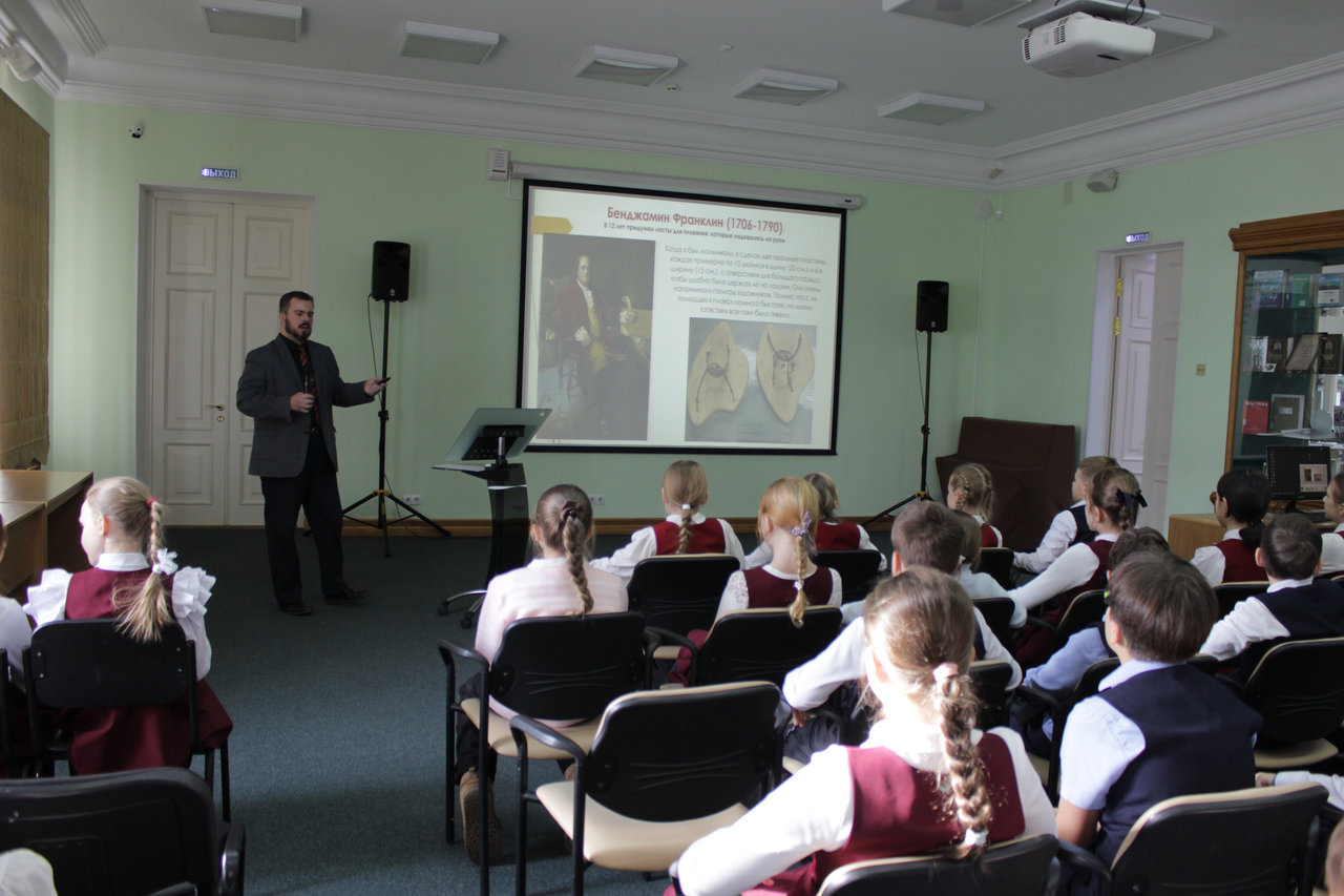 29 января в рамках проекта «Научная среда» состоялась лекция кандидата исторических наук, заведующего информационно-библиографическим отделом ДВГНБ Сливко Станислава Вадимовича «Юные изобретатели и их открытия». Учащиеся двух 4-х классов начальной школы «Открытие» узнали о празднующемся во всем мире Дне детских изобретений и ознакомились с изобретениями, авторам которых стали дети.
