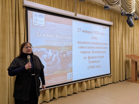 27 января сотрудники библиотеки провели историко-патриотическое мероприятие «За нами был наш гордый город» в КГАНОУ «Краевой центр образования». Детей познакомили с историей невероятного мужества, железной стойкости и самоотверженного патриотизма, какой была почти 900-дневная оборона осажденного Ленинграда в годы Великой Отечественной войны. На мероприятии подчёркивалось, что ленинградцы не только выдержали блокаду, но и разгромили многотысячную группировку врага. Они выстояли благодаря огромной любви к Родине, веры в неё, благодаря единству и правде. Блокада Ленинграда и его освобождение словно вписаны в генетический код народов России – и останутся там навсегда.