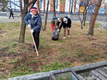 25 апреля добровольцы Волонтёрского центра Дальневосточной государственной научной библиотеки, в рамках акции «Сохраняем наследие вместе», участвовали в весеннем волонтёрском субботнике, проходившем на территории Градо-Хабаровского Собора Успения Божией Матери.