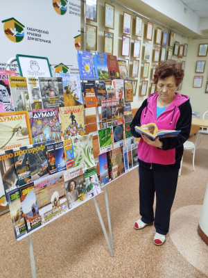 Выставка работала в рамках передвижной библиотеки ДВГНБ, где один раз в месяц жители дома ветеранов могут обменять прочитанные книги.