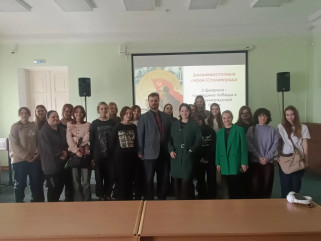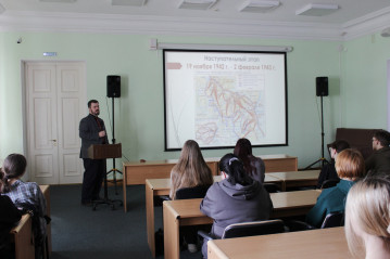 10 февраля состоялась лекция кандидата исторических наук, заведующего информационно-библиографическим отделом Сливко Станислава Вадимовича «Дальневосточные герои Сталинграда», посвященная 83-й годовщины победы Красной армии в Сталинградской битве. 80 студентов Хабаровского технологического колледжа узнали о дальневосточных дивизиях и бригадах, отправившихся в июле 1942 года на защиту Сталинграда. На лекции студенты проследили их боевой путь и познакомились с подвигами воинов-дальневосточников, а также посмотрели уникальные кадры кинохроники, запечатлевшие различные эпизоды Сталинградской битвы.