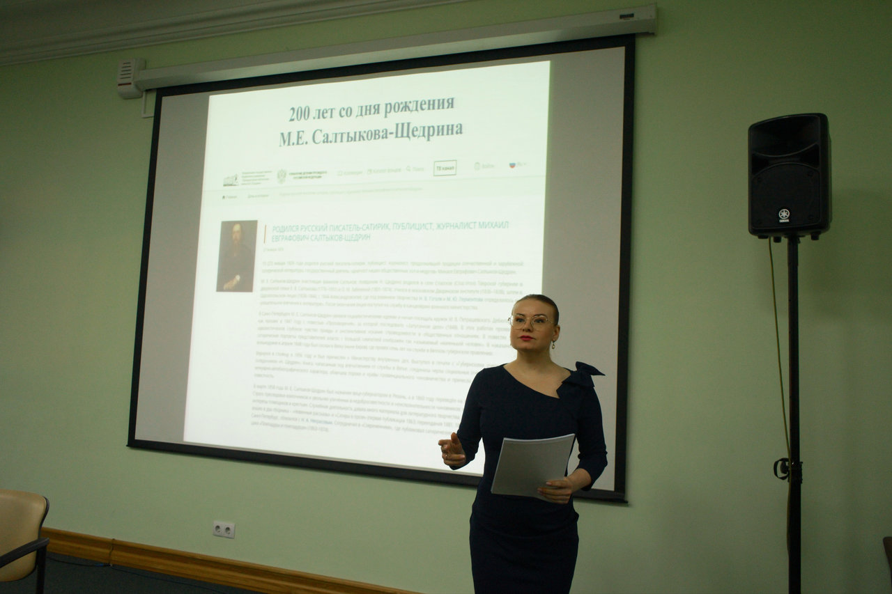 В рамках празднования 200-летия со дня рождения Михаила Евграфовича Салтыкова-Щедрина 27 января 2026 года отдел ХРЦПБ провёл просветительское мероприятие для школьников, посвящённое жизни и творчеству писателя, его вкладу в развитие русской литературы и сатирического жанра. Участники познакомились с основными этапами биографии автора, ключевыми произведениями, а также с коллекцией Президентской библиотеки, включающей цифровые копии редких изданий и архивных материалов, раскрывающих литературное наследие Салтыкова-Щедрина. Встречу посетило 15 человек. Основной целью стало расширение кругозора школьников и формирование интереса к классической литературе.