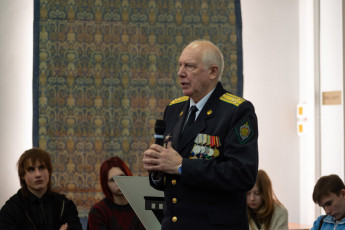 Сотрудники библиотеки рассказали молодёжи о воинах-героях, которые продемонстрировали миру лучшие черты характера русского солдата: патриотизм, мужество, доблесть, готовность к самопожертвованию, правдивость, скромность, благородство, – всё то, что вмещает в себя понятие «воинская честь». Также библиотекари подготовили выступление о дальневосточных воинах, удостоенных высокого звания Героя России в ходе Специальной военной операции. Почётным гостем мероприятия был полковник в отставке, председатель совета общественной организации ветеранов пограничной службы Российской Федерации по Хабаровскому краю и ЕАО, кавалер ордена Красной Звезды Сергей Владимирович Луцкий. И ветеран Специальной военной операции Егор Романович Ахтырский, заместитель руководителя филиала государственного фонда поддержки участников специальной военной операции «Защитники Отечества». Сергей Владимирович Луцкий и Егор Романович Ахтырский выступили с напутствием к молодёжи и призвали равняться на героев, работать на благо страны и быть готовыми к защите Родины. А юные артисты Дмитрий Ташматов, Максим Григорьев и Антон Рыжков из творческого объединения «Рампа» под руководством Натальи Юрьевны Чекан выступили с чтением стихотворений и прозы о наших воинах-защитниках, о Великой Отечественной войне, о дружбе и единстве народов России. На мероприятии прозвучали патриотические песни в исполнении солистки ансамбля «Берега России» Виктории Борисовой, демонстрировались видеоролики патриотического содержания.