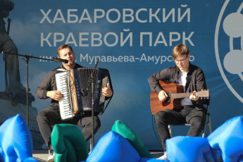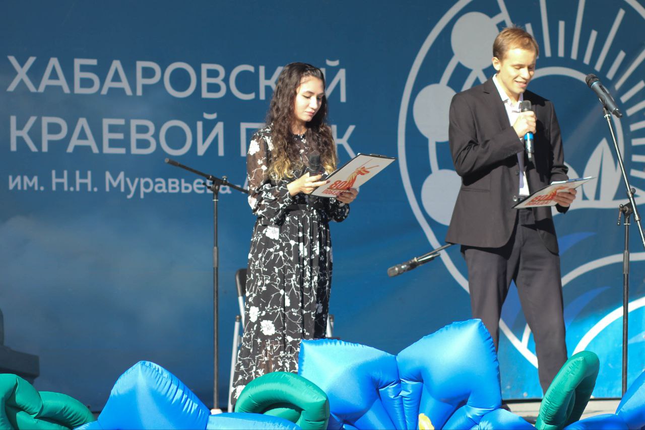 На открытой сцене «Ракушка» в Хабаровске собрались люди, которые своим творчеством почтили память героев и выразили гордость за ратные подвиги. На сцене звучали стихи и музыкальные номера, военные песни 40-х годов и современные патриотические композиции. Более 100 человек наслаждались программой, подготовленной сотрудниками ДВГНБ.
