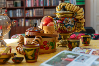 - Исторический клуб «Русич» представил насыщенную программу «Путешествие в историю», благодаря которой каждый участник смог погрузиться в мир женской гимназии начала ХХ века, узнать об истории народной музыки в одном инструменте, научиться разбираться в национальных костюмах народов России, познакомиться с коллекцией кукол в народных костюмах и научиться писать пером и чернилами.