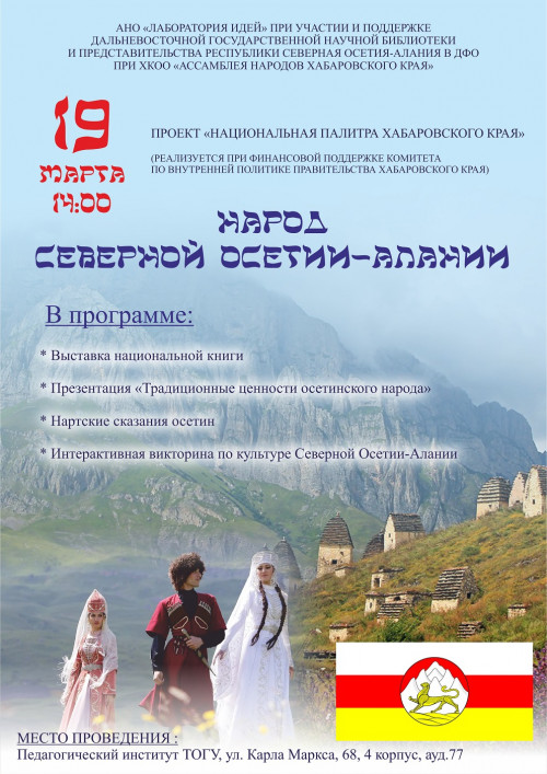 на площадке «Ресурсного центра» Педагогического института Тихоокеанского государственного университета состоится мероприятие, посвящённое культуре осетин