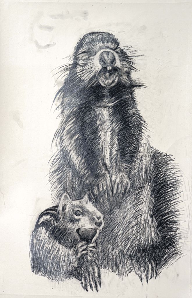 Братья суслик и бурундук. Бумага, карандаш. 84х54 см
