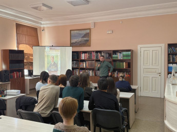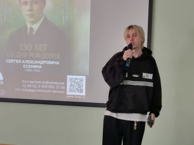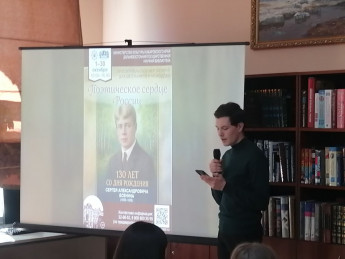 13 октября литературный круиз «Фестиваль знаменательных дат» встречал студентов Хабаровского техникума техносферной безопасности и промышленных технологий в Дальневосточной государственной научной библиотеке. Для них сотрудники библиотеки подготовили просветительское мероприятие «Поэтическое сердце России», посвящённое 130-летию со дня рождения великого русского поэта С. А. Есенина. В программе прозвучали выступления артистов с живыми исполнениями музыкальных произведений на стихи Есенина. Библиотекари познакомили учащихся с интересными фактами из жизни поэта, совершили виртуальное путешествие по родным местам юбиляра. Встреча получилась теплой, душевной и познавательной. Ребята с удовольствием читали любимые стихи С. А. Есенина.