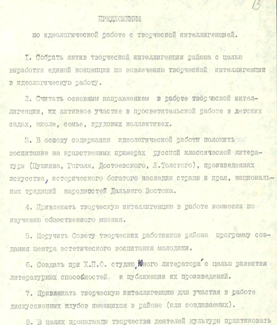 Предложения В. П. Сысоева по идеологической работе с творческой интеллигенцией, 1989 (ГАХК. Ф. 1243. Оп. 1. Д. 206. Л. 13-15)