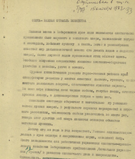 Охота как отрасль народного хозяйства Хабаровского края [машинописный автограф]