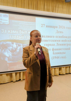 27 января сотрудники библиотеки провели историко-патриотическое мероприятие «За нами был наш гордый город» в КГАНОУ «Краевой центр образования». Детей познакомили с историей невероятного мужества, железной стойкости и самоотверженного патриотизма, какой была почти 900-дневная оборона осажденного Ленинграда в годы Великой Отечественной войны. На мероприятии подчёркивалось, что ленинградцы не только выдержали блокаду, но и разгромили многотысячную группировку врага. Они выстояли благодаря огромной любви к Родине, веры в неё, благодаря единству и правде. Блокада Ленинграда и его освобождение словно вписаны в генетический код народов России – и останутся там навсегда.