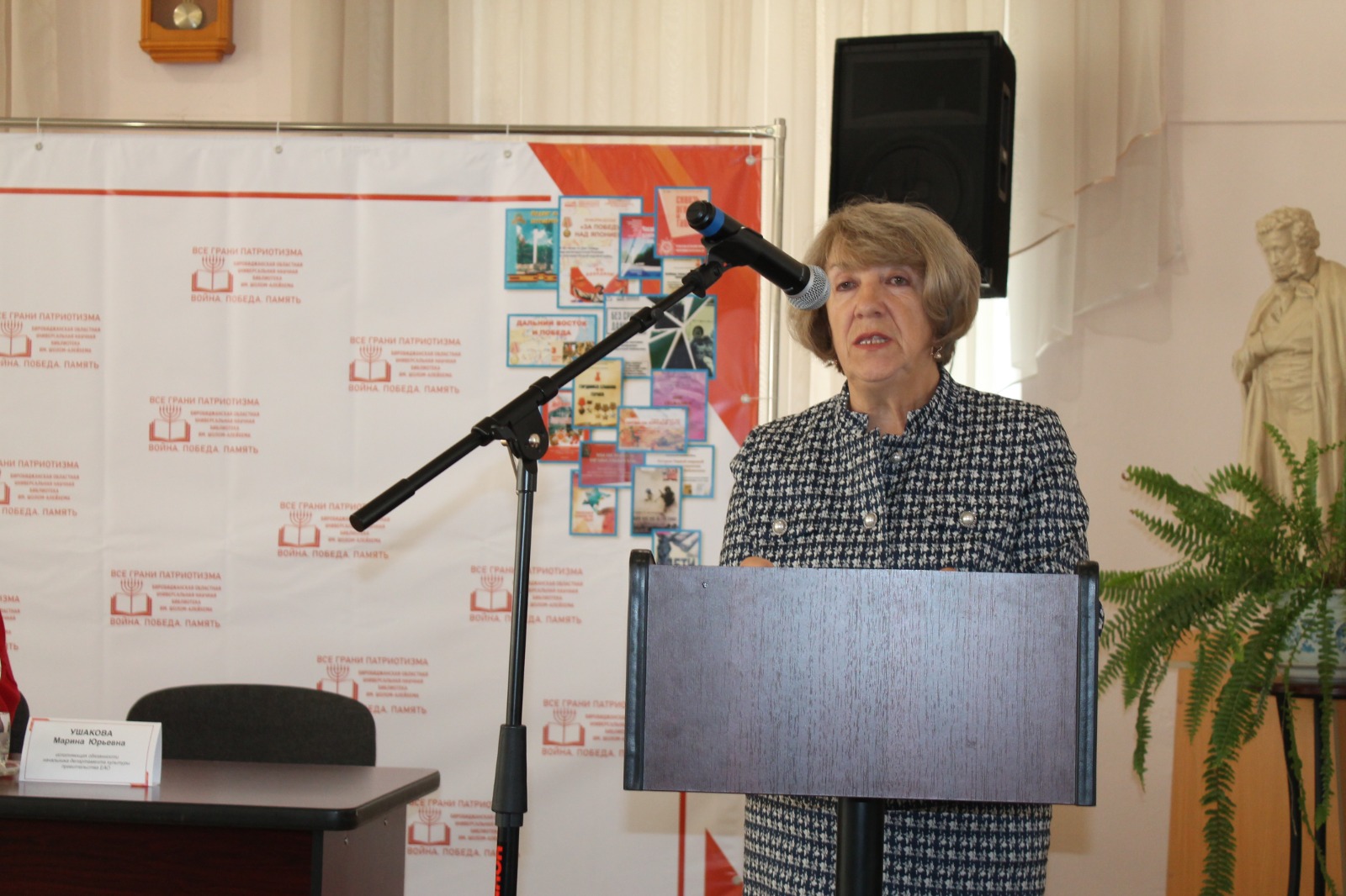 Специалистами ДВГНБ было представлено три доклада. Лариса Данилова, кандидат педагогических наук, зав. отделом научно-исследовательской и научно-методической работы, выступила с докладом на тему «Воспитание патриотизма средствами изобразительного искусства: на примере электронного ресурса “Виртуальное путешествие в мир образов Германа Палкина”». Ирина Филаткина, кандидат филологических наук, старший научный сотрудник, озвучила доклад «Партнерский проект Дальневосточной государственной научной библиотеки и АНО «Лаборатория идей» “Слава воину Пассару, слава снайперской винтовке”», подготовленный совместно с Татьяной Лазаревой, главным библиотекарем отдела обслуживания и фондов. Участники конференции также познакомились с видеодокладом научного сотрудника Людмилы Киселевой «Практика использования сетевых проектов патриотической направленности в библиотеках Хабаровского края».