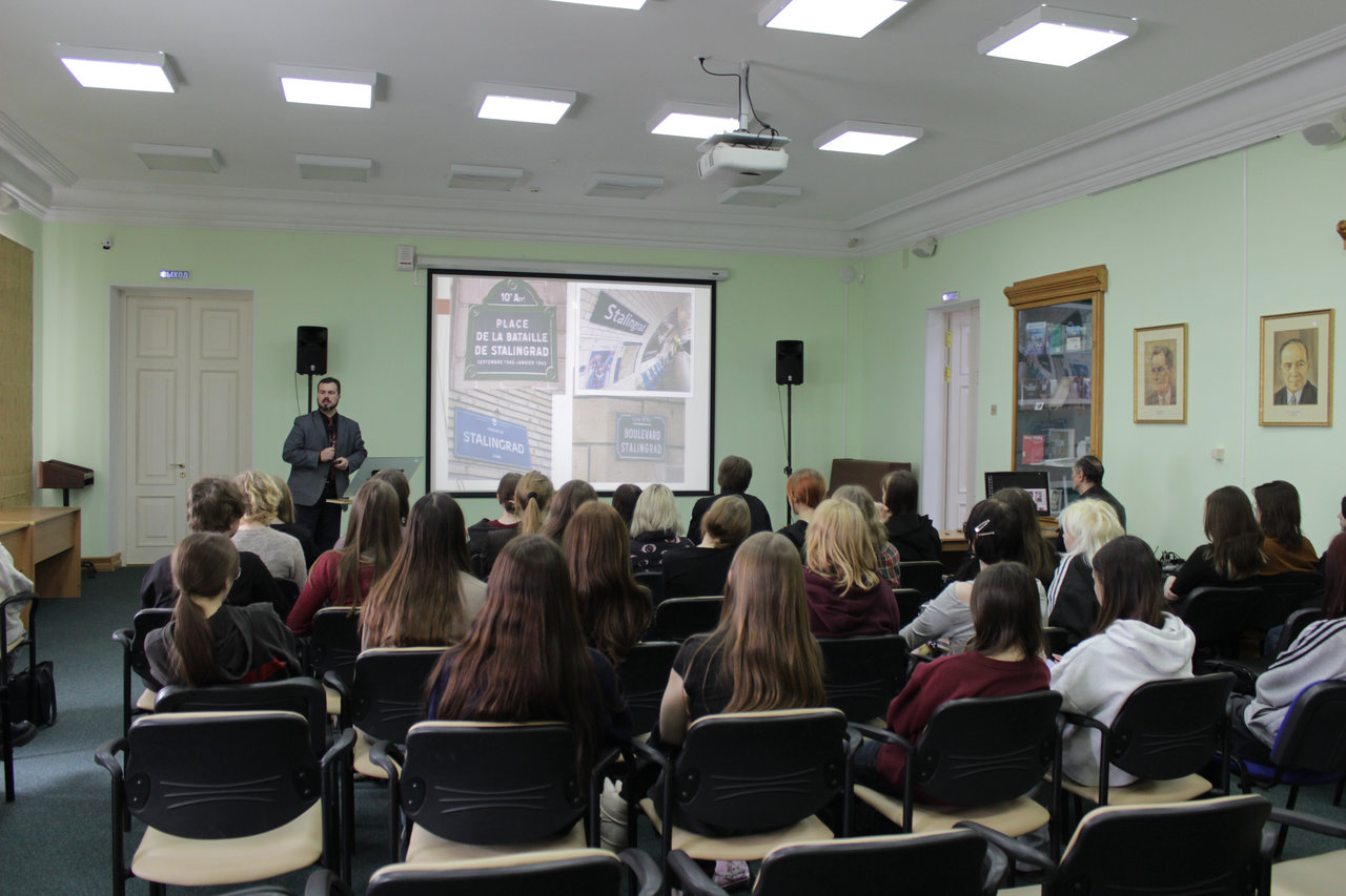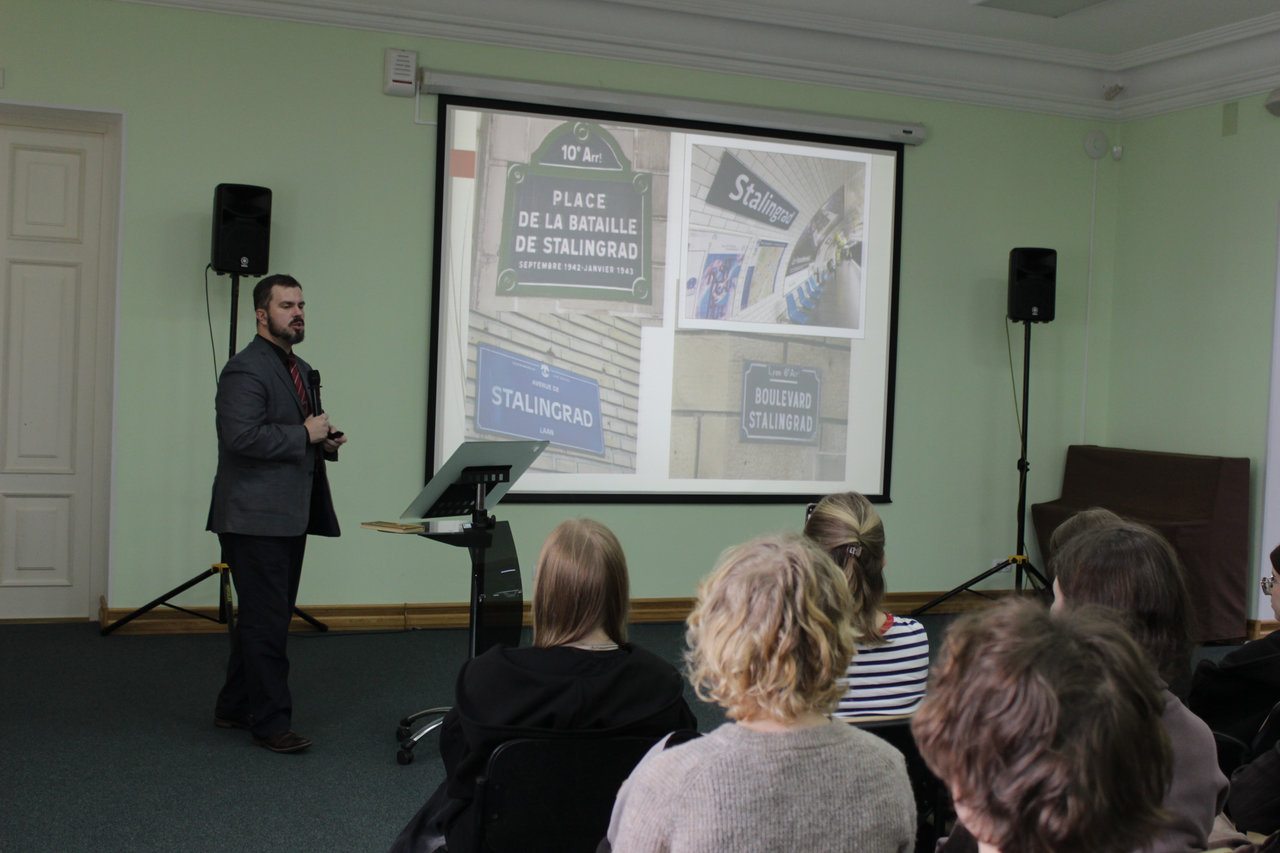 3 февраля в рамках цикла лекций «Страницы истории Дальнего Востока» в ДВГНБ состоялась лекция кандидата исторических наук, заведующего Информационно-библиографическим отделом Сливко Станислава Вадимовича «Дальневосточные герои Сталинграда». Посетившие лекцию студенты Хабаровского технологического колледжа и интересующиеся историей хабаровчане узнали о значении Сталинградской битвы, её влиянии на ход Второй мировой войны и посмотрели уникальные кадры фронтовой кинохроники. Лектор рассказал о роли дальневосточных дивизий в обороне Сталинграда, контрнаступлении Красной армии и разгроме окруженной группировки противника. Слушатели узнали о боевых подвигах Максима Пассара, Василия Зайцева, Евгения Дикопольцева, Михаила Даниловского, Евгения Герцева, Ильи Каплунова и других советских воинов, а также об увековечении памяти героев Сталинграда в стране и в мире.