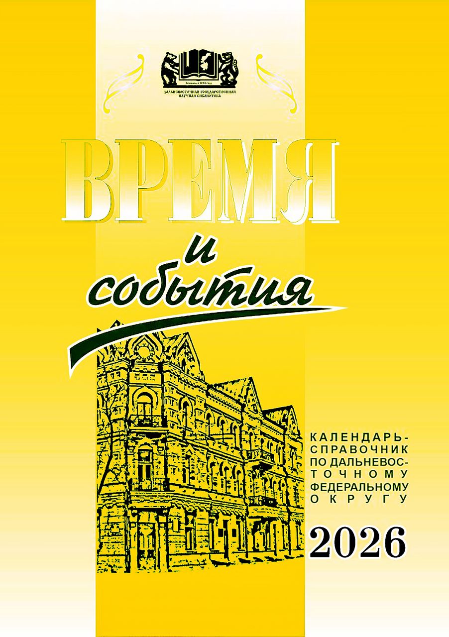 Время и события : календарь-справ. по Дальневост. федер. окр. / Дальневост. гос. науч. б-ка. - Хабаровск : ДВГНБ, 1957 - . - Ежегодник - До 1972 выходил под назв.: Календарь знаменательных дат по Дальнему Востоку.